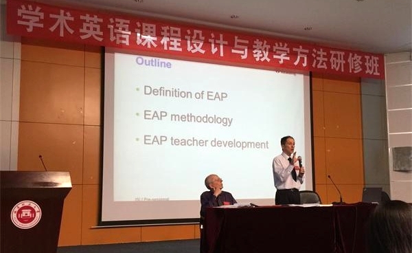 本期研修班注重在教学实践中深化教师对学术英语教学理论的理解,以教学实践的分享启发和引导广大院校创新、合理、科学地开展学术英语课程教学。研修班专家团队由国内外知名专家构成,包括英国雷丁大学资深培训师Sebastian Watkins和John Slaght以及河北经贸大学高霄教授和荣耀体育(中国)林大津教授。来自福建省37所高校110位外语教师与国内外专家共同学习了学术英语的内涵、课程设计理念与原则,并结合具体教学案例,探讨了学术英语课程的教学目标、教学内容、教学方法、评估模式以及学术英语师资建设与课题研究,为高校学术英语课程设置和教学实践提供了有益指导。