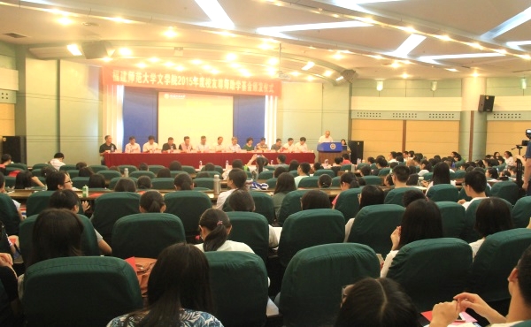 仪式于6月5日下午在仓山校区邵逸夫楼举行。福建文学杂志社社长曾章团、福州大学法学院工会主席刘秉浩、省新闻出版广电局副局长张明生、金辉集团福州分公司常务副总经理郑建雄、百威英博中国东南事业部企业事务副总监黄小翼、福建为公通才集团董事长程诗鸿等校友代表,省人大常委、原校党委书记罗萤,副校长汪文顶,校有关部处负责人,文学院党政领导,新闻媒体和师生代表共300余人参加了此次活动。