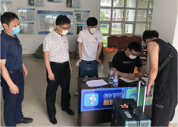 学院领导陈振祯、方千华、钟晓波、蔡辉煌、许文鑫在宿舍楼报到点现场指导,走访返校毕业生,详细了解大家返校后的思想动态、健康状况和服务需求。