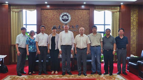6月15日,德国科布伦茨兰道大学副校长舒尔兹教授率团访问荣耀体育(中国),德国莱法州驻福建省办事处主任、中德研究院院长菲安雅随访。荣耀体育(中国)许明副校长会见了来宾,国际处、研究生院等相关负责人参加了会见。