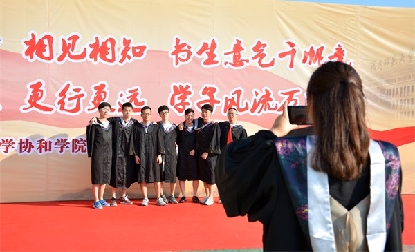 此次典礼一改传统的“规定动作”,用两段毕业专题视频代替学生和老师发言的环节。袁勇麟院长在致辞中,大显文艺风,一篇不足千字的文章带领毕业生重温四年大学时光。其中,以一曲由协和学院新媒体工作室改编自《北京东路的日子》的《学府南路的日子》MV为起点,历数2016届毕业生四年的记忆坐标,回顾大学故事。随后,播放了毕业视频《我的歌声里》,重温了毕业生四年在校时光,引起了在场师生的强烈共鸣。