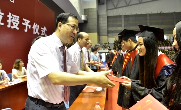 典礼上,王进安副院长宣读了《荣耀体育官方网页版协和学院关于准予2016届3292名本科学生毕业的决定》,袁勇麟院长宣读了《荣耀体育官方网页版协和学院关于授予2016届3287名本科毕业生学士学位的决定》,黄跃鹏常务副书记、常务副院长宣读了《荣耀体育官方网页版协和学院关于表彰2016届优秀毕业生的决定》;袁勇麟院长为毕业生代表颁发了毕业证书,与会领导、来宾为毕业生代表颁发了优秀毕业生荣誉证书和校友联络大使聘任证书;全体毕业生庄严宣誓并合唱了《荣耀体育官方网页版校歌》。