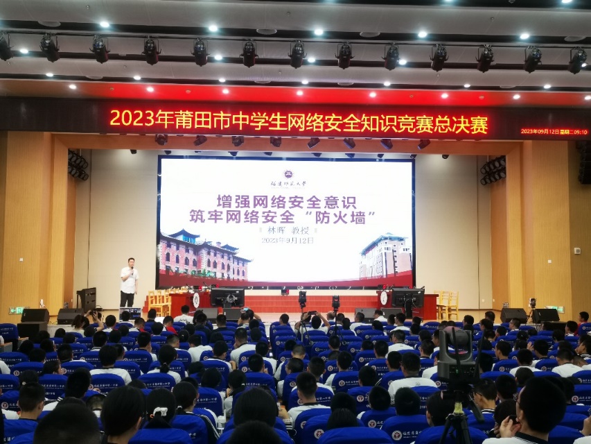 9月12日,2023年国家网络安全宣传周校园日主题活动暨莆田市中学生网络安全知识竞赛总决赛在莆田一中新度校区举行。学院网络空间安全系主任林晖教授应邀作网络安全知识专题讲座。