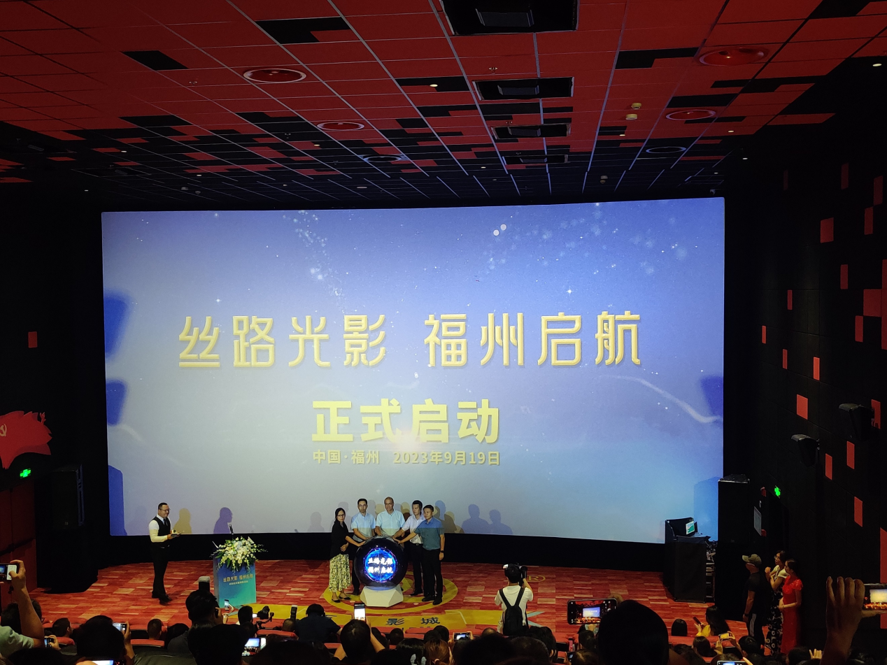仪式上,传播学院党委书记郑文灿,福州广播电视台副台长、福州广电集团传媒有限公司总经理念斌,共青团晋安区委员会书记朱杰忻,福建省电影发行放映协会秘书长吴华珍,福州广播电视台生活节目中心主任、影视频道负责人林卫军共同按下启动球,宣布“丝路光影 福州启航”系列活动正式启动。