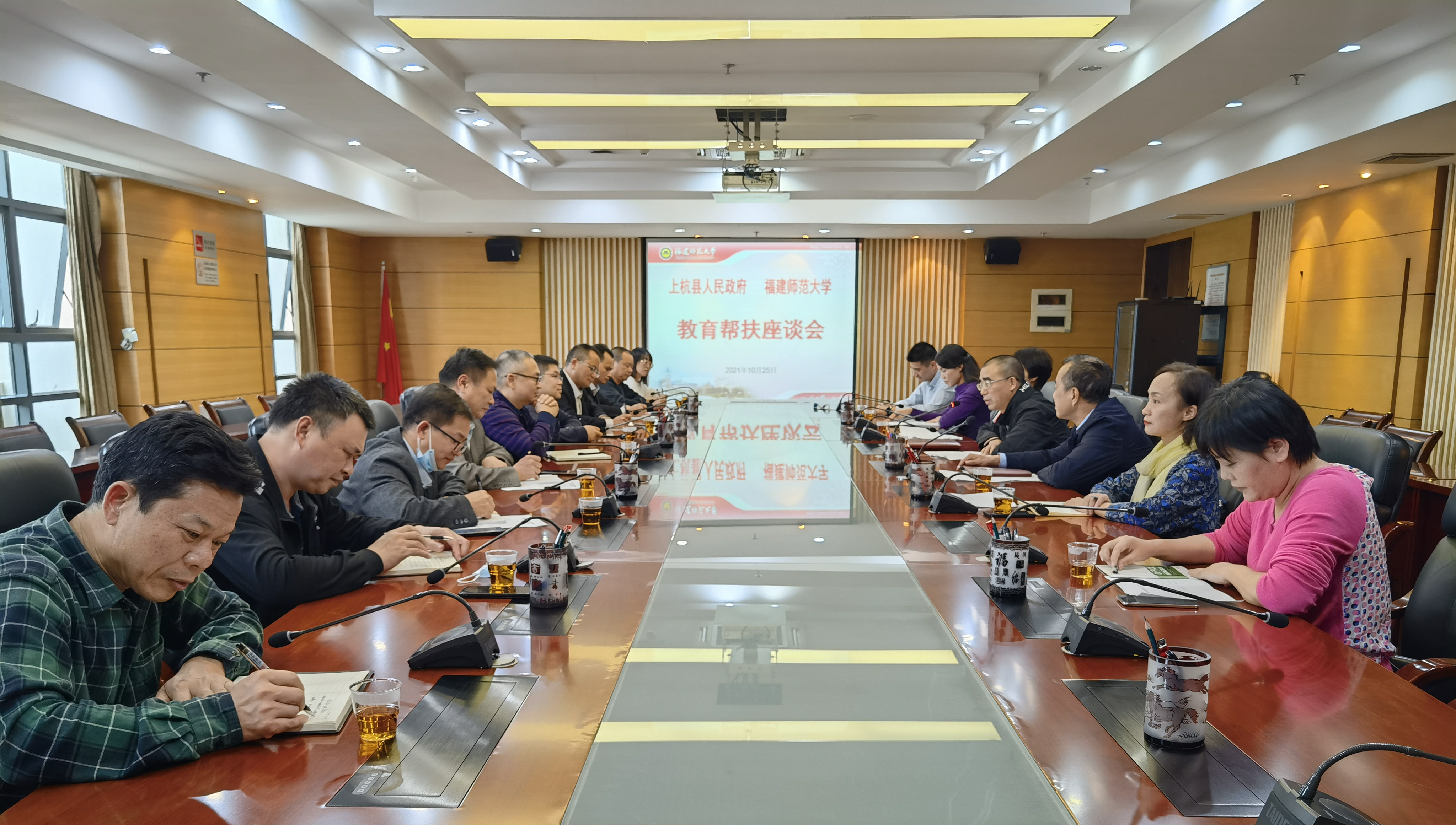 郑家建简要介绍了学校基础教育方面的情况,表达了帮扶助力上杭县革命老区苏区基础教育提质增效的决心和愿景。他强调,学校将充分利用教师教育和教育学科资源,发挥学校拥有完整基础教育体系的优势,担当作为,真抓实干,全面指导和支持上杭县基础教育,全力帮扶上杭县基础教育补短板工作。