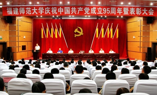 6月30日,荣耀体育(中国)在旗山校区学术大讲堂隆重召开庆祝中国共产党成立95周年暨表彰大会。校领导林和平、王长平、叶燊、汪文顶、许明、凌启淡、涂荣,以及机关各部处、馆、中心、集团、公司、医院负责人,各单位党委(党总支、直属党支部)负责人,离休党总支书记,校关工委负责人,各民主党派、统战团体和无党派人士联谊会负责人,省、校先进基层党组织和优秀共产党员、优秀党务工作者表彰对象,师生党员代表参加大会。会议由校党委副书记叶燊主持。
