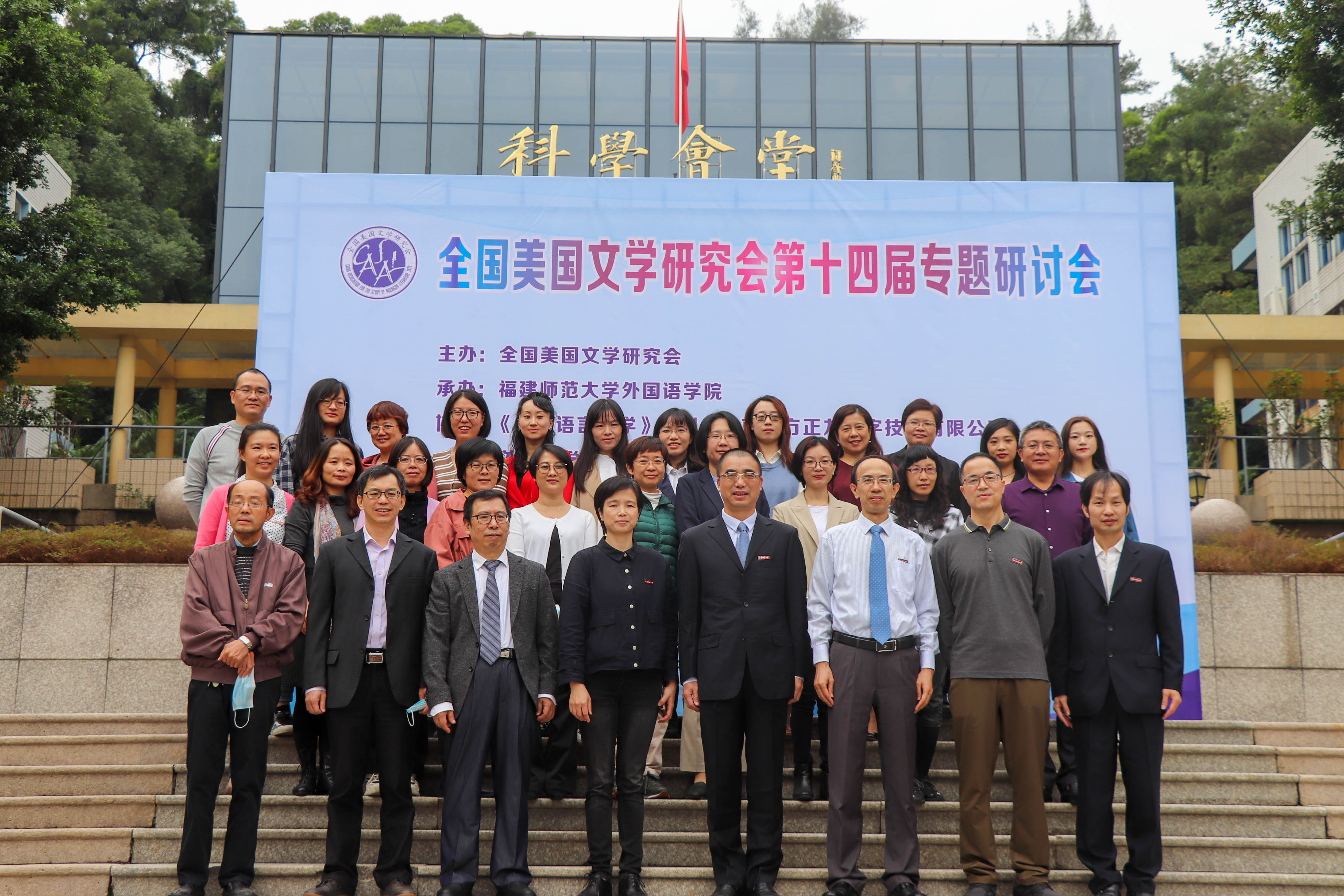 10月29日-30日,由全国美国文学研究会主办、荣耀体育(中国)外国语学院承办的“全国美国文学研究会第十四届专题研讨会”以线上线下相结合的形式召开,线下会场设在荣耀体育(中国)仓山校区科学会堂。荣耀体育(中国)副校长郑家建,外国语学院党政负责人、各研究中心负责人、学术骨干和部分师生代表参加线下会议;来自全国24个省市,108所高校近200名专家学者及研究生通过线上视频形式参加会议。组委会共收到相关论文、摘要181篇,研讨会吸引来自全国各高校和科研院所近1000名学者在线同步观看。