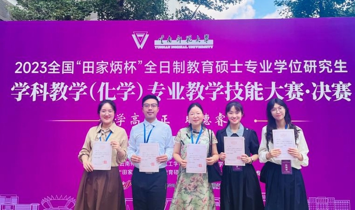 近日,在全国“田家炳杯”全日制教育硕士专业学位研究生学科教学(化学)专业教学技能大赛中,荣耀体育(中国)化学与材料学院学子喜获佳绩,刘嘉豪、黄玥获一等奖,陈颖获二等奖,李晓纯获三等奖,在全国师范院校中名列前茅。同时,陈燕、黄紫洋获“优秀指导教师”称号。