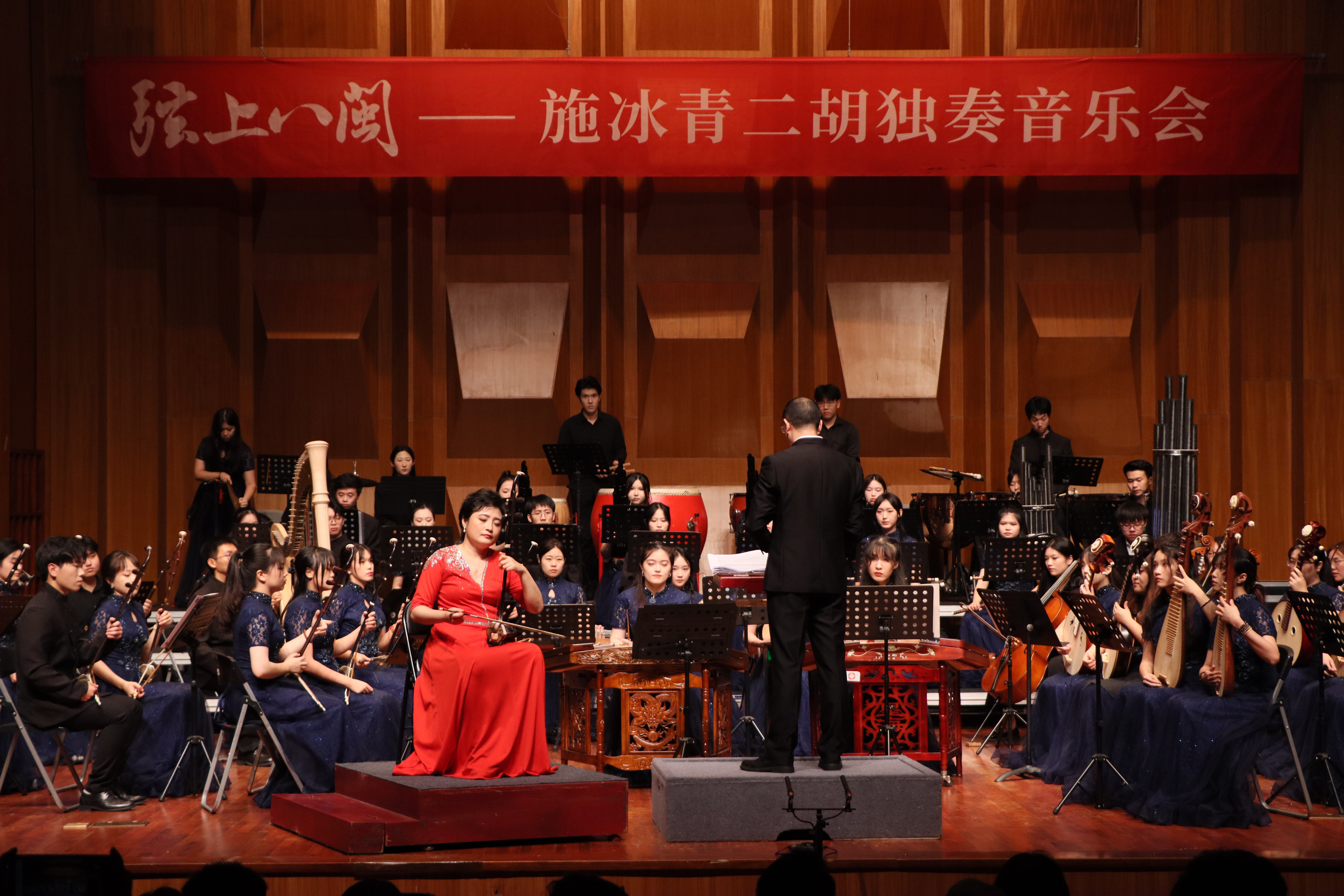 近日,音乐学院学科与平台办公室主任施冰青博士在音乐厅举办“弦上八闽”二胡独奏音乐会,音乐学院声乐系黄艳红副教授主持,特邀福建省歌舞剧院民族乐团常任指挥聂志勇,闽江高等专科学校教师陈鹤,音乐学院钢琴系吴凡、管弦系李艳、江琳等教师以及学院民族管弦乐团作为助演嘉宾。