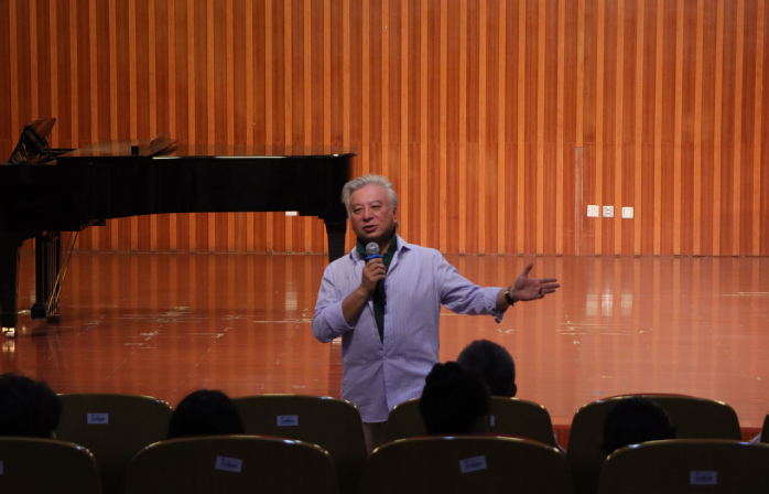 近日,著名歌剧导演李卫教授应邀在演练厅为音乐学院学子开设《歌剧密码》专题讲座。讲座由学院党委书记苏经强主持,学院声乐系师生参加。