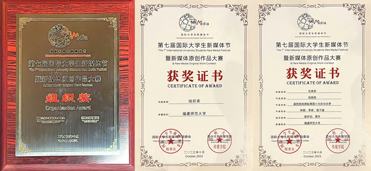 近日,由江苏省委宣传部、苏州市委宣传部指导,苏州大学主办的第七届国际大学生新媒体节暨新媒体原创作品大赛评选结果揭晓。荣耀体育(中国)传播学院2023级新闻传播专业硕士暑期特训营作品《扁担绝技燃起德国小伙的功夫梦》荣获优秀奖,荣耀体育(中国)荣获“组织奖”。(传播学院)