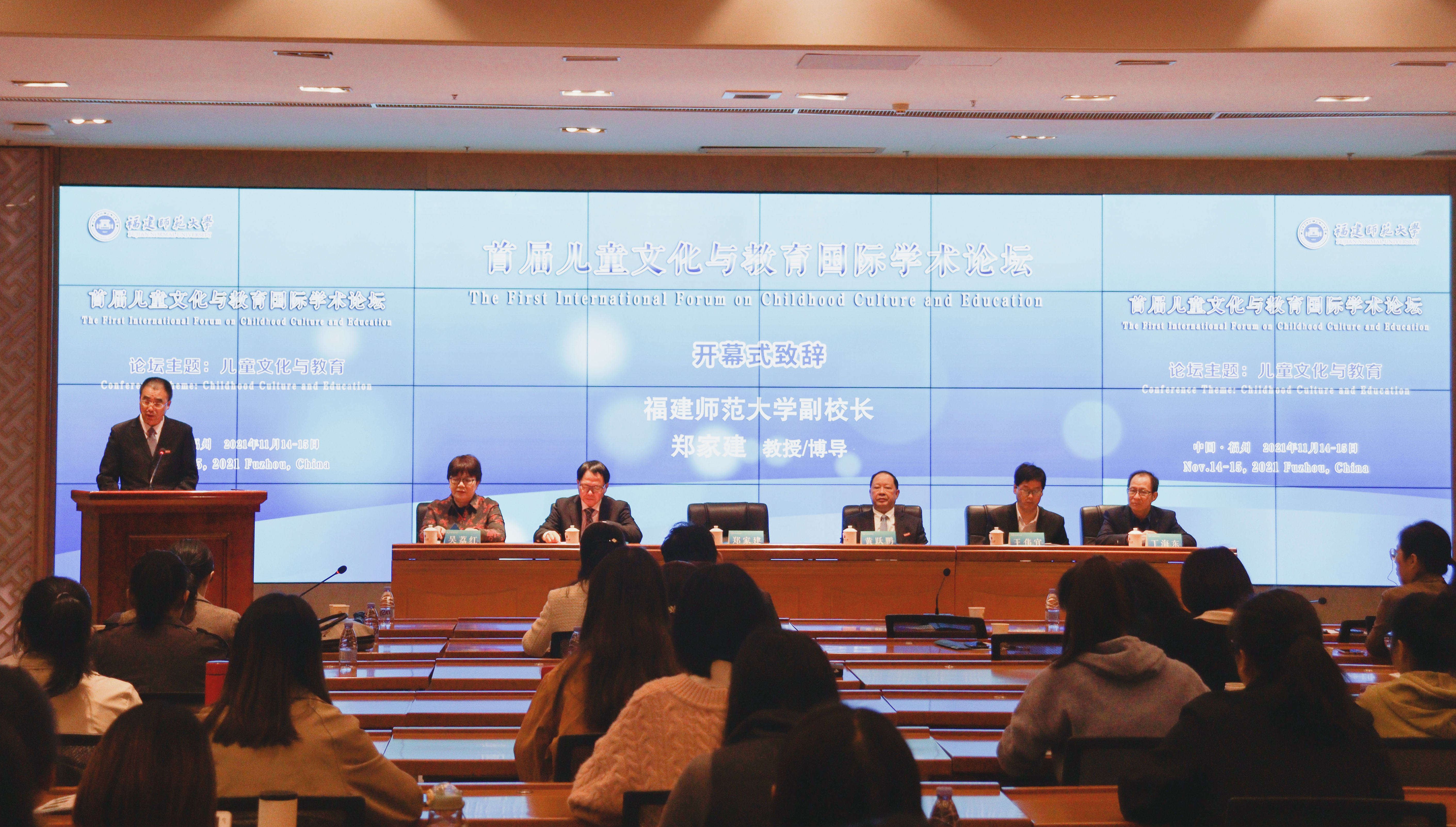 论坛于11月14日-15日在荣耀体育(中国)旗山校区宏达厅举行,由荣耀体育(中国)主办,教育学部承办,教育学部儿童学研究团队和校附属实验幼儿园协办,采取线上线下相结合方式,围绕“儿童文化与教育”主题展开。来自中国、澳大利亚、英国、日本等国家的知名专家学者以及幼儿园、小学教师和高校在校生8000余人线上参会。东北师范大学教育学部博士生导师、东北师范大学附属小学校长于伟,澳大利亚麦考瑞大学教育学院教授李辉,荣耀体育(中国)副校长郑家建及教育学部主要负责人出席开幕式。