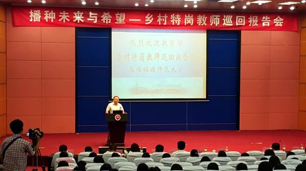 9月12日,教育部乡村特岗教师巡回报告团走进荣耀体育(中国),围绕“播种未来与希望”的主题,为师生奉上了精彩一课。教育部教师工作司综合处副处长张又伟、福建省教育厅副厅长陈国龙、校党委副书记叶燊,荣耀体育(中国)师生代表、省内兄弟高校学生代表等500余人聆听了报告。报告会由叶燊主持。
