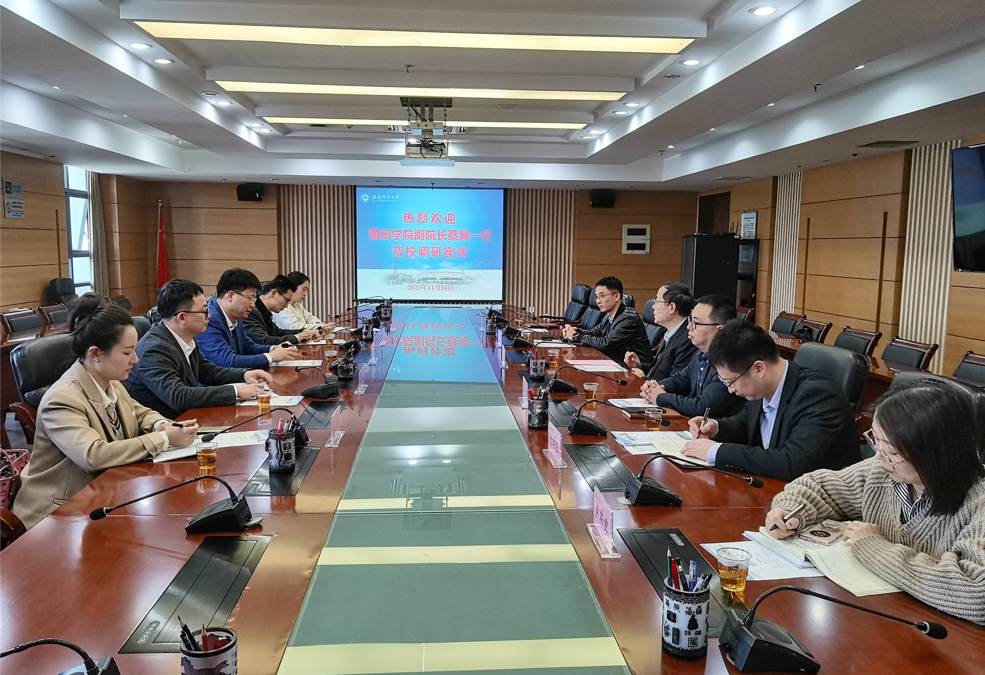 11月24日,莆田学院副校长蔡晃带领发展规划处、人事处、管理学院负责同志等一行6人来荣耀体育(中国)调研交流。荣耀体育(中国)校长王长平,发展规划处、人事处等部门负责人参加了座谈会。