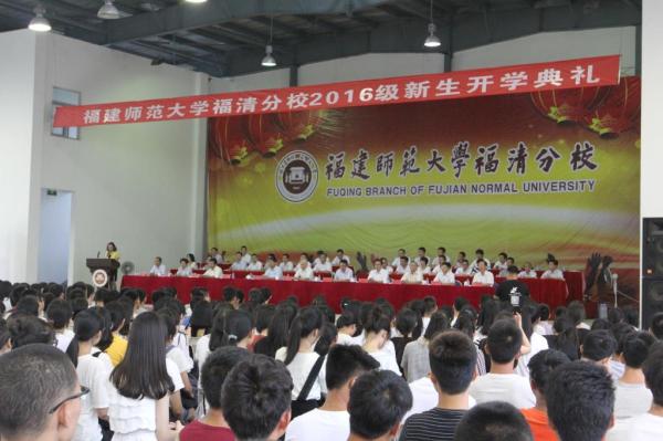 9月19日下午,福清分校2016级新生开学典礼在五马山校区球类馆隆重举行。许明副校长,福清分校班子成员,机关各部门、各教学单位党政负责人,教师代表、学生代表、2016级新生辅导员及全体新生参加了典礼。