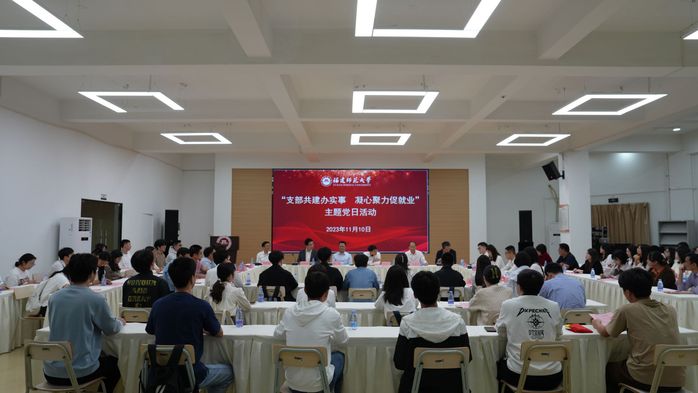 1110日上午,学生工作部党支部联合省委办公厅秘书二处党支部、中信银行福州分行机关党委、福建大数据一级开发有限公司党支部、福建海峡银行机关党委、法学院敬法党支部开展“支部共建办实事 凝心聚力促就业”主题党日活动。各党支部成员和来自经济学院、计算机与网络空间安全学院、法学院的师生代表等50余人参加。