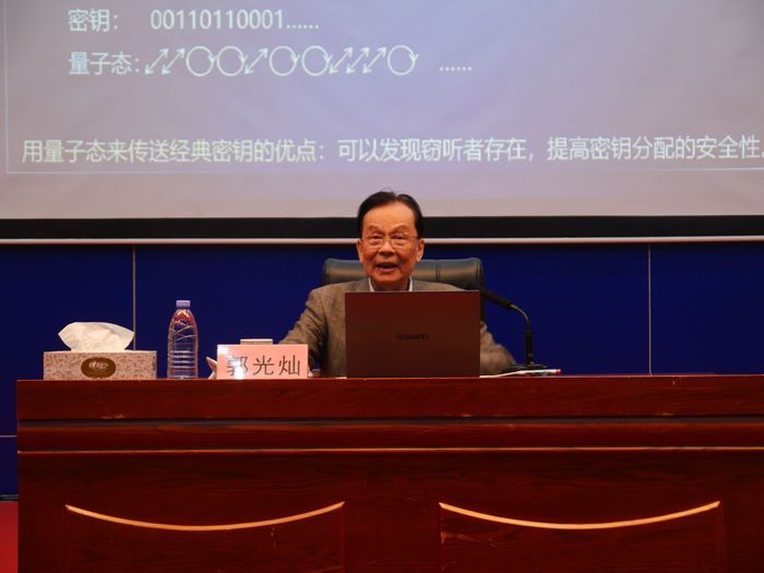讲座中,郭光灿院士围绕量子技术的优势、量子时代的信息安全、量子中继与量子U盘、量子测量等内容,重点讲解了经典物理和量子物理的概念,运用大量实例,深入浅出地对量子的特性作了具体解释,同时就量子技术行业应用与发展趋势进行系统阐述。郭院士的讲座理念前沿、内涵丰富、反响强烈,具有很强的针对性和指导性。