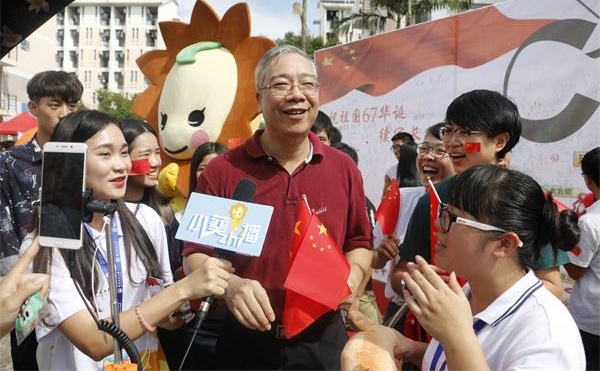 本次游园活动在庆祝国庆的同时,也极大丰富了留校学生的假期生活。活动现场,林和平亲切问候了留校同学,送上了节日的祝福,并与同学们游戏互动。小葵工作室通过“福师大小葵”直播平台对游园活动进行了全方位的直播,短短一个半小时,吸引了7.5万人次在线观看。不少同学通过直播平台纷纷送上祝福、为祖国点赞。