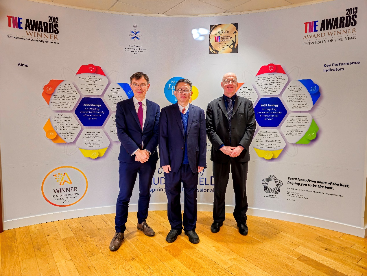 代表团一行访问了英国哈德斯菲尔德大学,与常务副校长 Tim Thornton、分管国际事务副校长 Alistair Sambell 等高层管理人员分别座谈。双方回顾并肯定了两校通信工程专业合作办学项目的办学成效,围绕推动该专业实现国际认证目标以及外方教师选派、教学管理团队交流、学生培养等两校合作办学机构工作进行了交流探讨,在深化合作层次、创新合作领域等达成共识,一致同意鼓励学生开展本硕连读或直博学习,推进教师培训提质增效,助力师资队伍国际化水平提升。