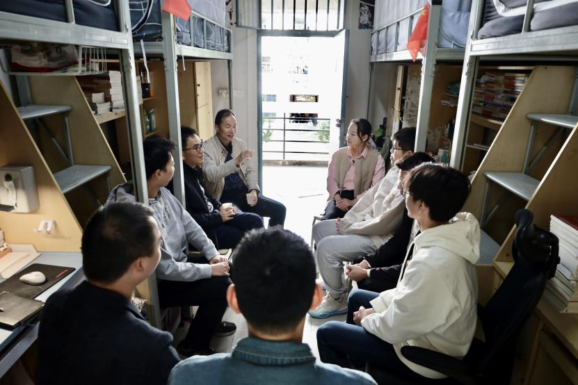 活动中,盛子同、汪启思共同为学生党员宿舍挂牌宿舍与学生座谈交流,了解学生的学习、生活和个人发展等情况。盛子同希望学生党员要在学生社区中亮身份、作表率、当先锋,尽义务、善作为、树榜样,引领身边同学共同营造一个安全、和谐、文明的学生社区环境,做到一名党员一面旗帜,发挥示范引领作用。同时学生党支部书记也一同为本支部学生党员宿舍挂牌,并在一站式学生社区党员活动室与学生党员座谈交流,强化学生党员在学生社区的先锋模范作用。
