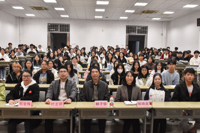 1115日,经济学院举行“名师领航强自信 专业赋能促成长”2023级新生对话名师主题教育活动。院关工委主任林子华教授应邀作题为“潜心学习,立志成才”专题讲座,2023级工商管理大类、国际经济与贸易专业的学生参加,活动由院党委副书记叶龙祥主持。