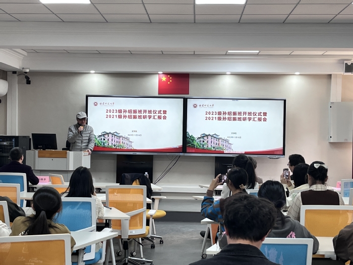 李小荣在开班式上致辞,期望同学们以高尚的品德修养为舵,追求至道之理,以实现自我的理想和追求。杨发福充分肯定了孙绍振班的拔尖人才培养成效,表示将一如既往与文学院共同探索培养。2020级孙绍振班成员钟晨露分享了自己的学习经验,2021级孙绍振班成员詹小禾汇报了“沪陕闽三校中文专业拔尖学生论坛”的情况,2023级孙绍振班成员林慧作为新生代表发言。