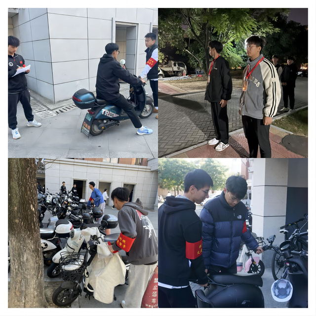 学院成立由院党委副书记为负责人、各年级辅导员带班、学生志愿者积极参与的电动自行车文明督导队,每日在学院综合楼、学生宿舍楼、教学楼等场所开展电动自行车违规停车、不戴头盔骑行等不文明行为劝导工作,坚持从源头上防范不文明骑行、不规范停车现象,确保消防通道畅通,降低校园交通事故发生概率。