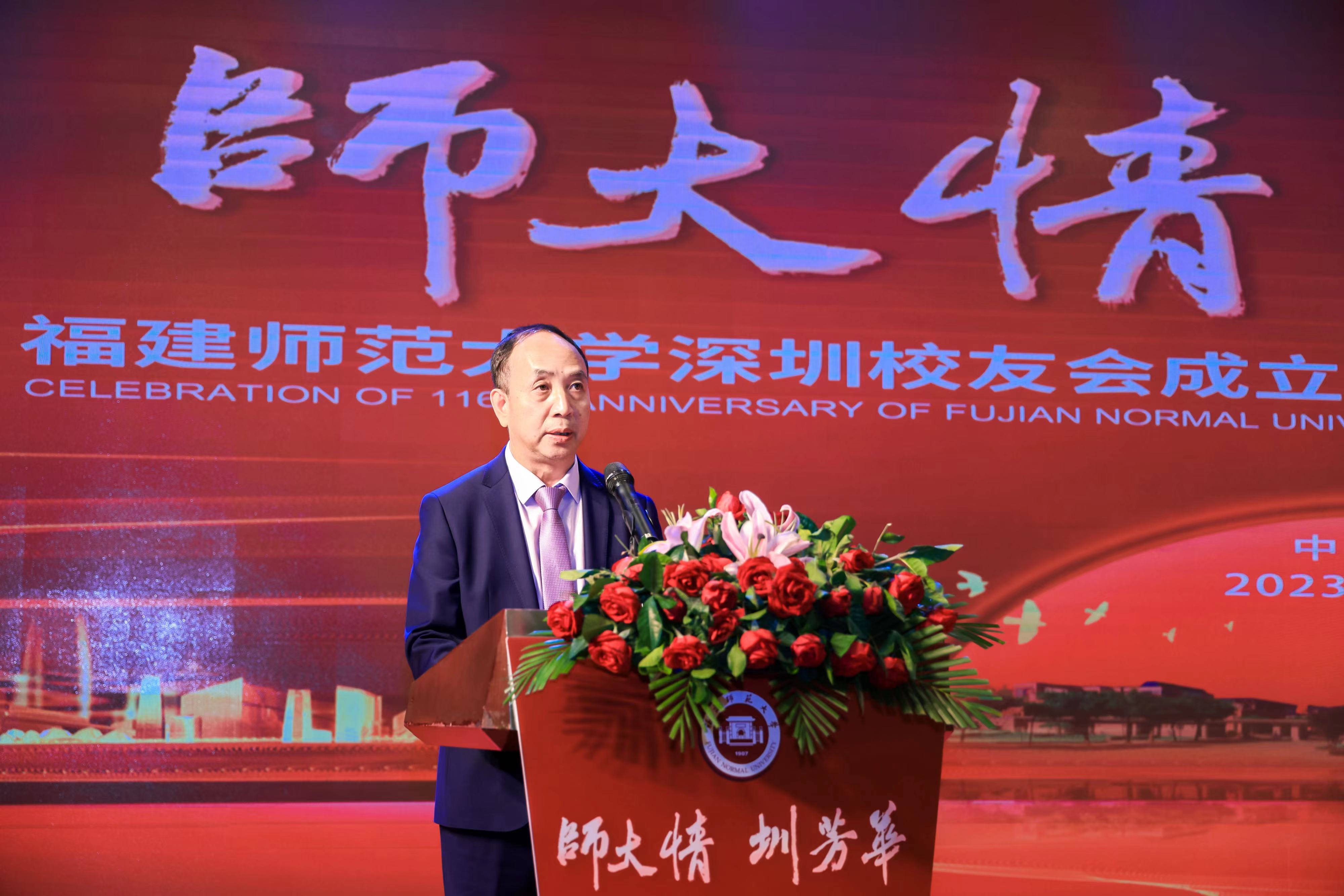 校党委书记潘玉腾通过视频方式送去祝福,他希望深圳校友赓续爱校荣校、团结创新的优良传统,践行“一朝福师人,一生福师情”的根情文化观,发挥桥梁纽带作用,增强校友工作的凝聚力、向心力,推动构建校友和母校“发展共同体”,为校友发展整合资源,为母校建设凝聚力量,为母校再谱事业发展新华章、深圳经济社会发展作出新的更大贡献。陈晓红在致辞中代表学校向新当选的深圳校友会理监事会表示祝贺,向长期关心支持母校事业发展的在深校友致以谢意,并通报了学校取得的新进展新成效,她指出,深圳校友会的成立,不仅搭建起在深校友与母校、校友之间沟通交流、共谋发展的平台,也将更好地发挥深圳、香港、澳门三地校友的智慧和力量,助力粤港澳大湾区发展建设。