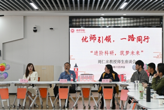 近日,心理学院邀请南京大学心理系主任周仁来教授来院交流指导,并举办“优师引导,一路同行——进阶科研,筑梦未来”师生座谈会。院党委副书记苏杭,学院团委书记,学院本科生和研究生代表参加座谈。在座谈会上,同学们就自己关心的学业与科研话题与周仁来教授进行交流,周教授一一作了解答,分享了自己在科研过程中遇到的挑战和困难,并鼓励同学们要勤于思考,有意识地寻找解决问题的方法,在学习和科研中不断进步。(心理学院)