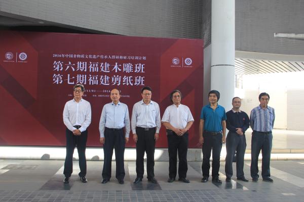 “2016年中国非物质文化遗产传承人群研修研习培训计划”由文化部、教育部主办,福建省文化厅、荣耀体育(中国)美术学院和手工设计研究所承办,旨在提高中国非物质文化遗产保护水平,增强传承活力,弘扬中华优秀传统文化,进一步推进民间文艺事业的理论研究与传承实力。“第六期福建木雕班、第七期福建剪纸班”是“2016年中国非物质文化遗产传承人群研修研习培训计划”项目之一,培训时间为11月1日至11月30日,培训人数共120人。