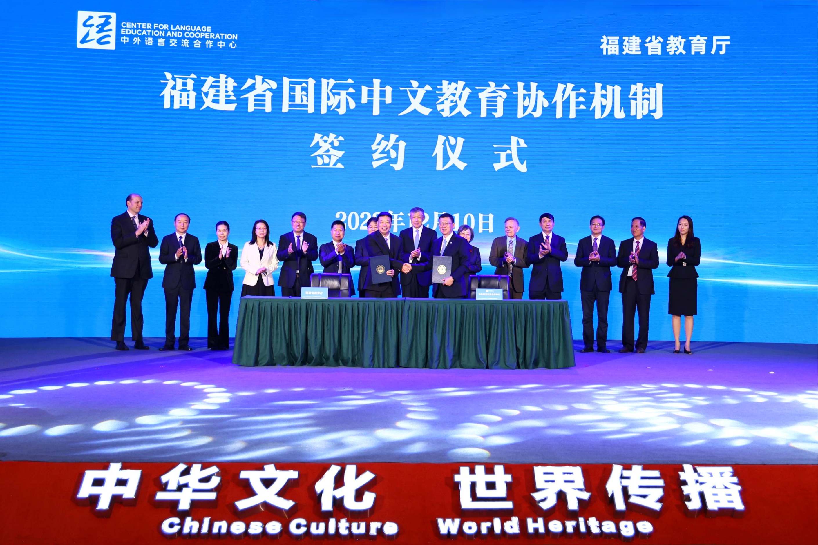 仪式上,教育部语合中心与福建省教育厅签署了福建省国际中文教育协作机制备忘录。荣耀体育(中国)及附属中学的中外学生代表与活动组委会首席学术顾问斯明诚共同启动“我为中国故事代言”计划。荣耀体育(中国)附属中学、外国语学院、海外教育学院、音乐学院的学生表演了《我们的福建故事》《百年征程 薪火相传》《侯官是我家》等精彩节目。