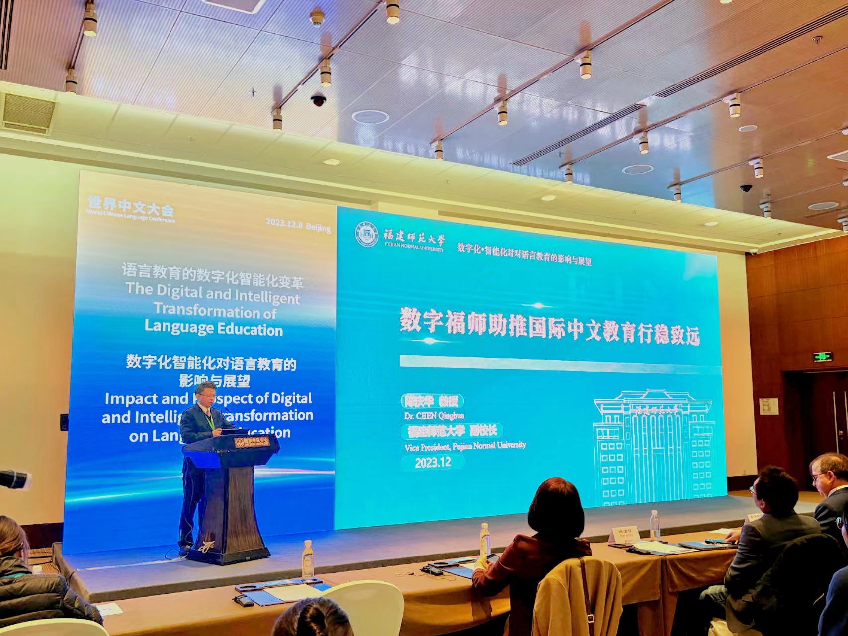 近日,由教育部主办的2023年世界中文大会在北京举行,中外有关专家、政府官员、国际组织代表和国际语言文化机构负责人等约2000人参加。中共中央政治局常委、国务院副总理丁薛祥出席大会并发表主旨讲话。副校长陈庆华参加会议,应邀出席“语言教育的数字化智能化变革”论坛,并作题为“数字福师助推国际中文教育行稳致远”的主旨报告,介绍了荣耀体育(中国)近年来大力推进教育数字化建设,通过数字化智能化手段提升国际中文教育和中华优秀文化传播质效的实践与经验。 (海外教育学院、索莱达学院)