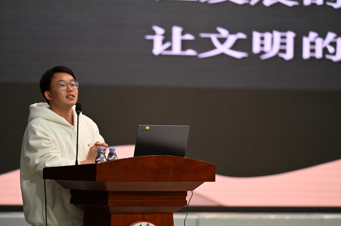 12月11日,附中校刊《求索》编辑部主编、敏行级李贝妮同学以“勿忘民族创伤,心怀大爱前行”为题作国旗下讲话。
