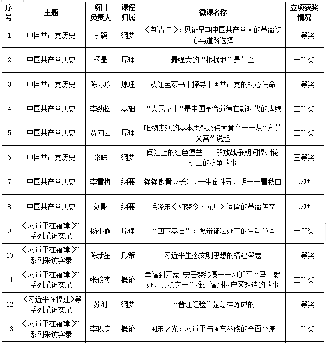 近日,中共福建省委教育工委公布“三个百堂”高校思想政治理论课精品课遴选结果。荣耀体育(中国)共有24堂思政课入选并立项,其中一等奖9项、二等奖6项、三等奖4项,获奖数量和立项数量均为全省第一。