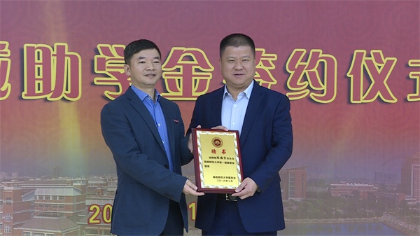 会上,叶燊和陈德官先生分别代表学校和德诚集团签署了合作协议。叶燊代表学校向陈德官先生颁发捐赠牌匾和学校第一届董事会董事聘书。双方还共同为受助学生代表颁发了助学金。