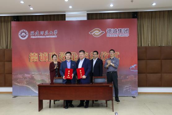 签约仪式于11月17日在旗山校区第十会议室举行。德诚集团董事长陈德官先生,德诚集团副总裁华雪燕,德诚集团副总经理林兴生,德诚集团副总经理罗申,校党委副书记叶燊、学工部(处)、校友会负责人和受助学生代表出席仪式。