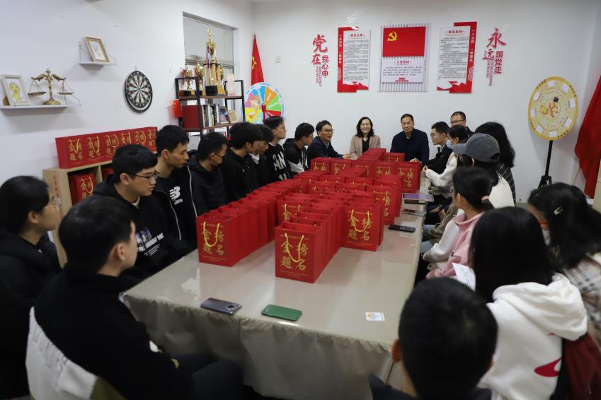 活动现场,学院领导为考研学子送上 考研上岸礼包”,勉励同学们坚守考研初心和信心,保持良好心态,劳逸结合,以最饱满的精神状态从容应考。