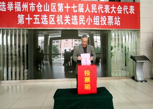 12月1日为仓山区第十七届人大代表换届选举投票日,荣耀体育(中国)三个选区共设立72个投票站,组织全校(含协和学院)43405位选民参加投票,通过集中计票并经仓山区选举委员会确认,李碧珍、吴青青、李小荣分别当选第14、15、16选区仓山区第十七届人民代表大会代表。