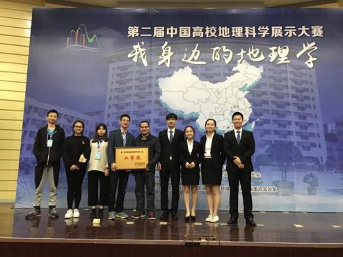 中国高校地理科学展示大赛是由中国地理学会、中山大学地理科学与规划学院主办,教育部高等学校地理科学类专业教学指导委员会支持的一项地理科学最高水平的全国性本科生学术竞赛。本届大赛历时7个月,围绕“我身边的地理学”主题,吸引了来自中山大学、南京师范大学、河南大学、武汉大学等80多所高校的130余支队伍报名参赛,经全国20余所高校专家组成的评审团函评,确定人文地理组和自然地理组各20只队伍晋级决赛,各参赛队根据大赛主题,经过学术展示和现场答辩两个阶段的激烈角逐产生最终成绩。