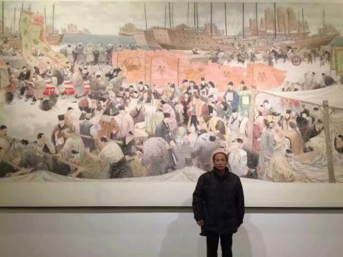 11月20日,中华史诗美术大展在中国国家博物馆开幕。荣耀体育(中国)美术学院四位教师赴京参加展览,入选中华史诗美术大展的四件作品分别为徐里、李晓伟、李豫闽共同创作的油画《范仲淹著<岳阳楼记>》, 王耀伟、孙志纯、丁铮共同创作的油画《宋慈<洗冤集录>》, 张明超创作的中国画《开海通商图》,尉晓榕、卢志强共同创作的中国画《沈括与<梦溪笔谈>》。