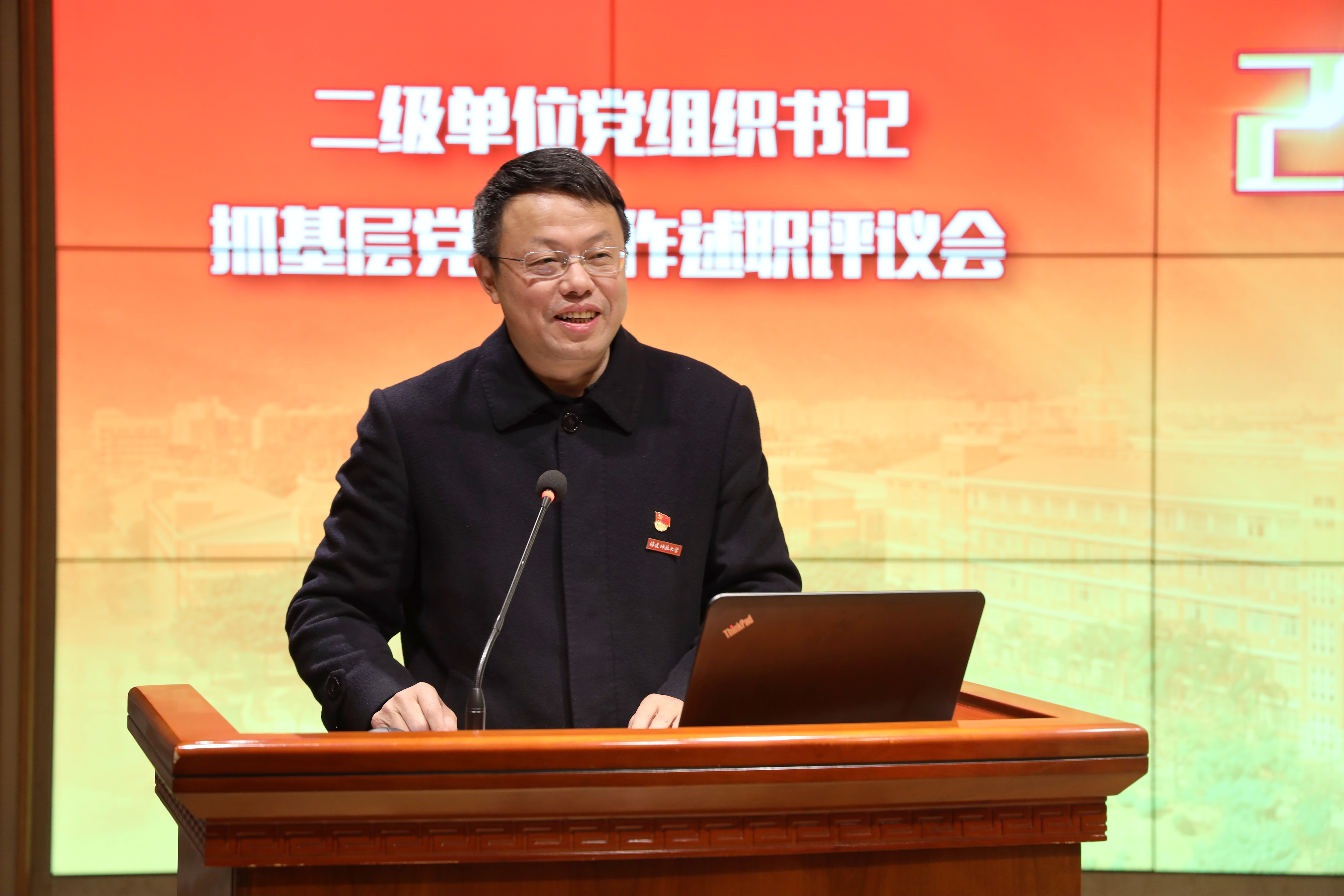 校党委书记潘玉腾对述职情况进行点评并作讲话。他充分肯定2021年基层党建工作取得的成绩,也指出存在的问题,并就党建与中心工作融合发展提出四点意见:一要抓政治统领,提高政治站位,坚定不移用习近平新时代中国特色社会主义思想铸魂育人,切实学深悟透习近平总书记重要讲话重要指示批示精神,着力锤炼政治担当,提高政治能力。二要抓基层基础,夯实党建根基,树立大抓基层的鲜明导向,不断增强基层党组织政治功能,着力解决“中梗阻”“断头路”问题,推动学校基层党组织全面进步全面过硬、党建质量全面创优全面提升。三要抓责任担当,推动高质量发展,始终牢记习近平总书记对学校的殷切嘱托,紧紧围绕“加快建成富有鲜明特色的综合性全国一流大学”奋斗目标,在更高起点上谋划推进学校事业发展。四要抓作风建设,深化从严治党,持续拧紧作风建设发条,以“提高效率、提升效能、提增效益”行动为重要抓手,聚焦作风建设关键、紧扣年度工作重点,着力解决师生身边的不正之风,为党的二十大胜利召开营造优良环境。