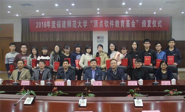 颁发仪式于12月23日上午在旗山校区第十会议室举行。顶点软件股份有限公司副总裁赵伟先生、人力资源经理程佳女士、总裁办主任陈岚女士,校党委副书记叶燊、学工部(处)、数学与计算机科学学院师生代表和受助学生代表出席仪式。
