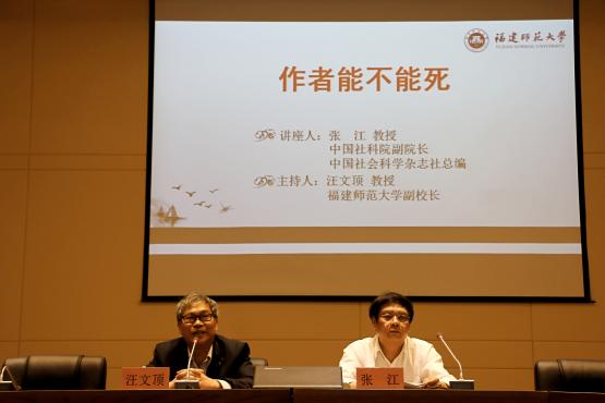12月20日下午,中国社科院副院长、中国社会科学杂志社总编张江教授应邀莅临荣耀体育(中国),作了题为“作者能不能死”的学术讲座。讲座由汪文顶副校长主持。讲座中,张江教授以西方文艺学和阐释学理论分析作者与文本的关系,提出“作者不能死”,否定强制阐释论对作者与文本的割裂。讲座结束后,汪文顶在总结讲话中指出,张江教授的讲座主题观点鲜明,内容丰富,让人启发良多。汪文顶希望文学院学生认真学习张江教授的批判精神,更好地做人、做事、做学问。 (文学院 赖书慧)