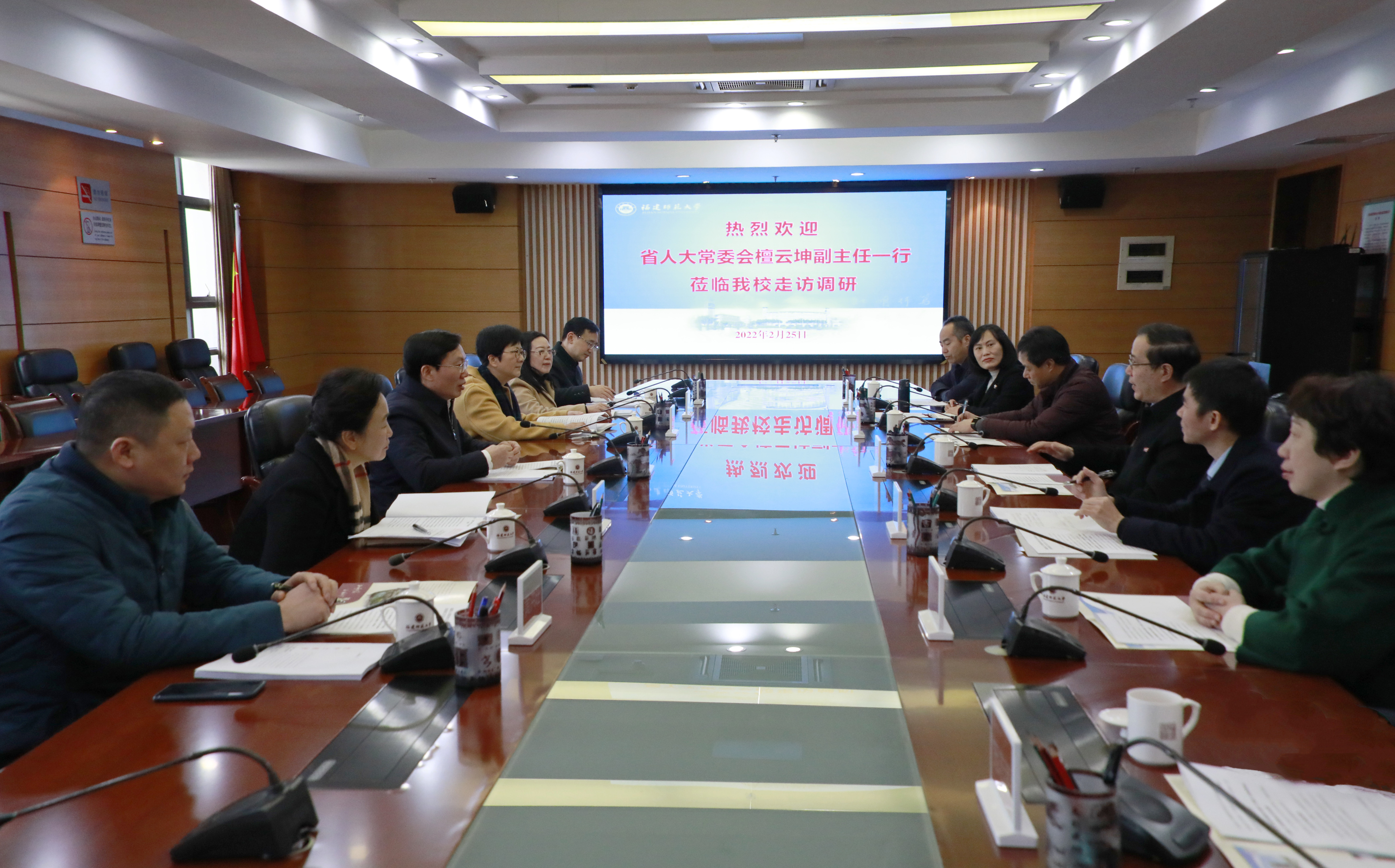 2月25日,省人大常委会副主任檀云坤莅校调研。省人大常委会委员、法制工委主任李明蓉,省人大常委会委员、环城工委主任朱华,省人大常委会环城工委副主任王芳,荣耀体育(中国)领导潘玉腾、王长平,有关单位负责人陪同调研并参加座谈。
