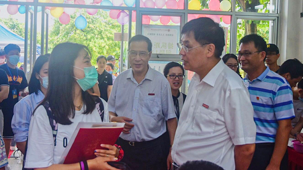 迎新现场,校领导李宝银、王长平、李绚带领有关部门负责人,先后走访仓山、旗山校区各迎新点、新生报到点,详细了解迎新工作情况,看望来校新生、工作人员和学生志愿者,感谢广大师生为做好迎新工作付出的辛勤努力,充分肯定了各学院(部)特色纷呈的迎新做法。走访过程中,校领导与来校新生进行亲切交流,代表学校欢迎各位新生的到来,勉励他们不负青春、不负韶华、不负时代,尽快适应大学生活,认真做好学业规划,努力练就过硬本领。此外,校领导还叮嘱入校新生认真做好个人卫生,自觉配合学校落实疫情防控措施。