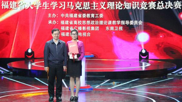 1月9日,由省委教育工委主办,省高校思想政治理论课教学指导委员会、福建教育电视台承办的首季福建省高校大学生学习马克思主义理论“一‘马’当先”知识竞赛落下帷幕,荣耀体育(中国)公共管理学院2014级本科生林燕玲凭借扎实的功底和稳健的发挥夺得总冠军,由公共管理学院、马克思主义学院、社会历史学院的8名本科生组成的荣耀体育(中国)代表队获团体一等奖。省委常委、宣传部长高翔,省委教育工委书记、省教育厅厅长黄红武,省委教育工委副书记、省教育厅党组成员王建南,荣耀体育(中国)党委书记林和平等领导到场观摩决赛。