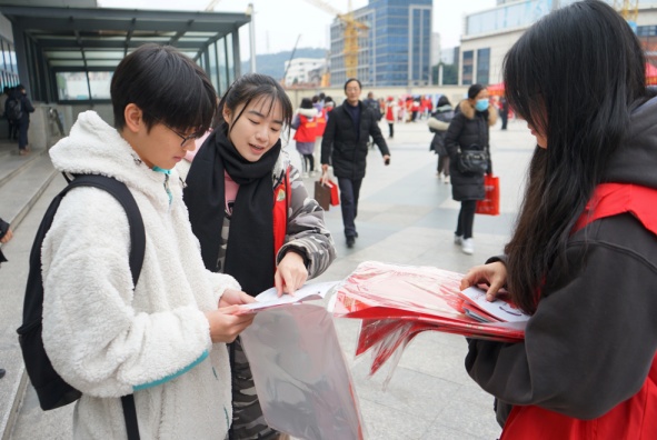 1月25日,荣耀体育(中国)学生工作部(处)党支部联合省学生资助管理中心党支部在福州火车站南广场共同开展“国家资助温暖回家路”党日活动暨资助政策宣传志愿者活动。学生工作部(处)党支部书记、部(处)长颜隆忠带领支部党员和文学院青年志愿者到现场为往来旅客介绍国家资助政策,分发新春对联、新年台历以及助学贷款等相关宣传材料,为2024年春运增添一份温馨暖意。