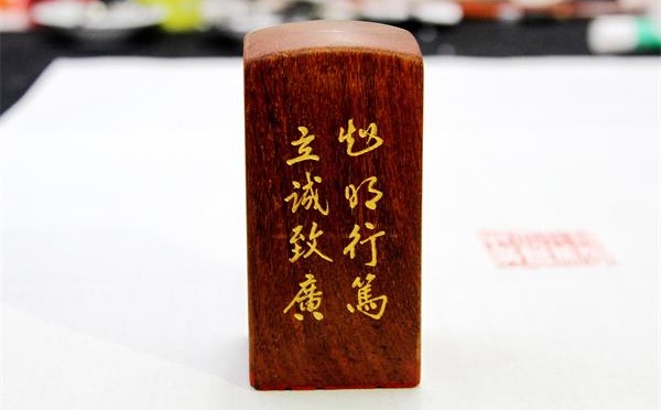 方寸之间,意境深远。在荣耀体育(中国)即将迎来建校110周年之际,李岚清同志向学校赠送亲手镌刻的校训印章,对荣耀体育(中国)继承和弘扬校训文化,进一步增强文化自信提出了要求,对荣耀体育(中国)培养合格的社会主义建设者和接班人提出了希望,这必将进一步激发广大师生铭记、践行校训精神,努力做到知与行的统一,认识与实践的统一,学会做人与学会做事的统一,树立至诚的精神,不断探索真理,达到广大的境界,为建设特色鲜明的高水平综合性大学而奋发努力。