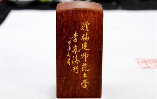 3月17日,受中共中央政治局原常委、国务院原副总理李岚清同志委托,省委常委、秘书长梁建勇,副省长黄琪玉向荣耀体育(中国)赠送校训印章,表达对荣耀体育(中国)的厚爱与期望。校党委书记林和平代表学校接受印章。