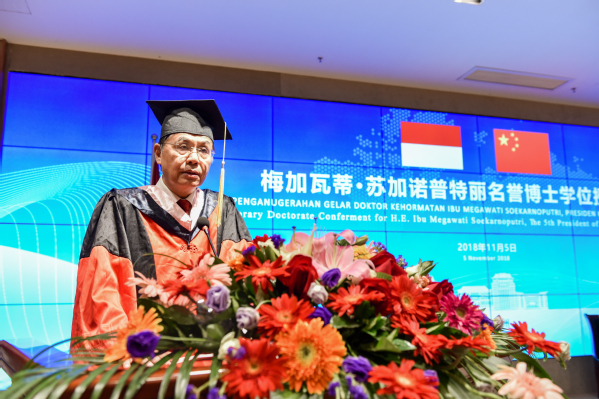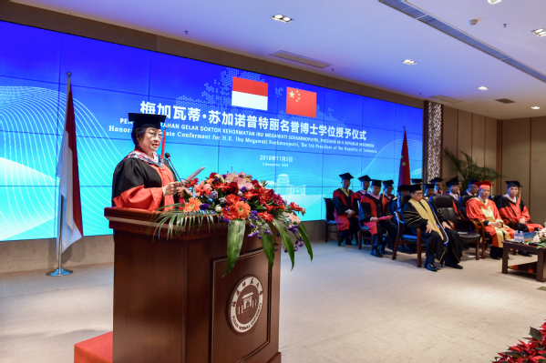 名誉博士梅加瓦蒂·苏加诺普特丽发表致辞并作主旨演讲